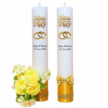 Set Lumanari, Nunta de Aur, Personalizate, 2 Bucati, Auriu, 35 cm, LNAU001