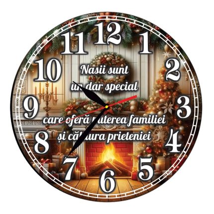 Ceas Craciun , Lemn, 40cm, Multicolor, CCRUV011