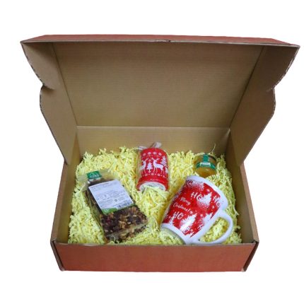 Set cadou Craciun 4 piese, Ceai, Lumanare, Cana, Miere, 32,5×25,5×10,5 cm, SCC002