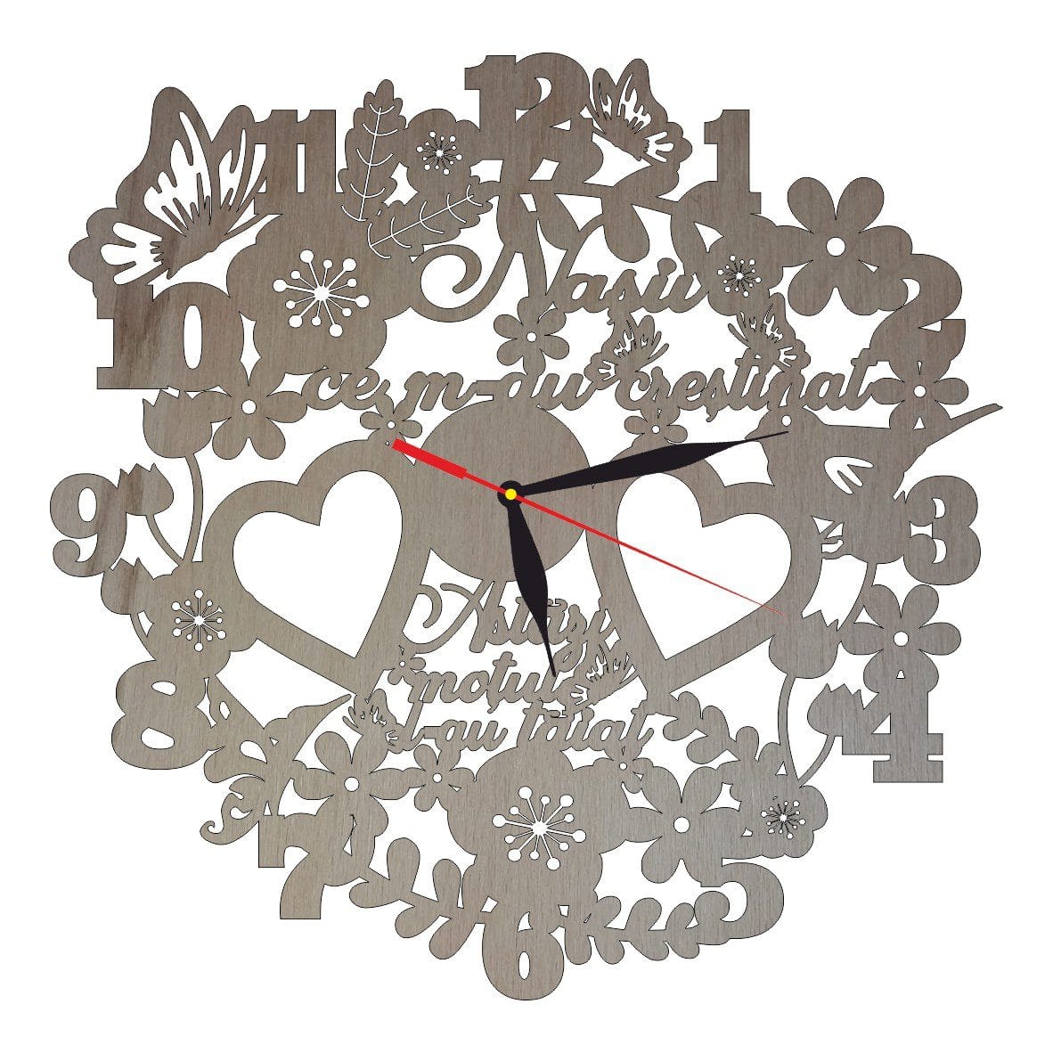 Ceas personalizat din lemn, cu mesaj pentru Nasi.