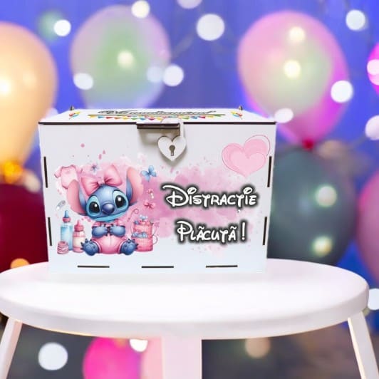 O cutie de dar pentru botez cu Stitch, Fetita– veselă, elegantă și încăpătoare