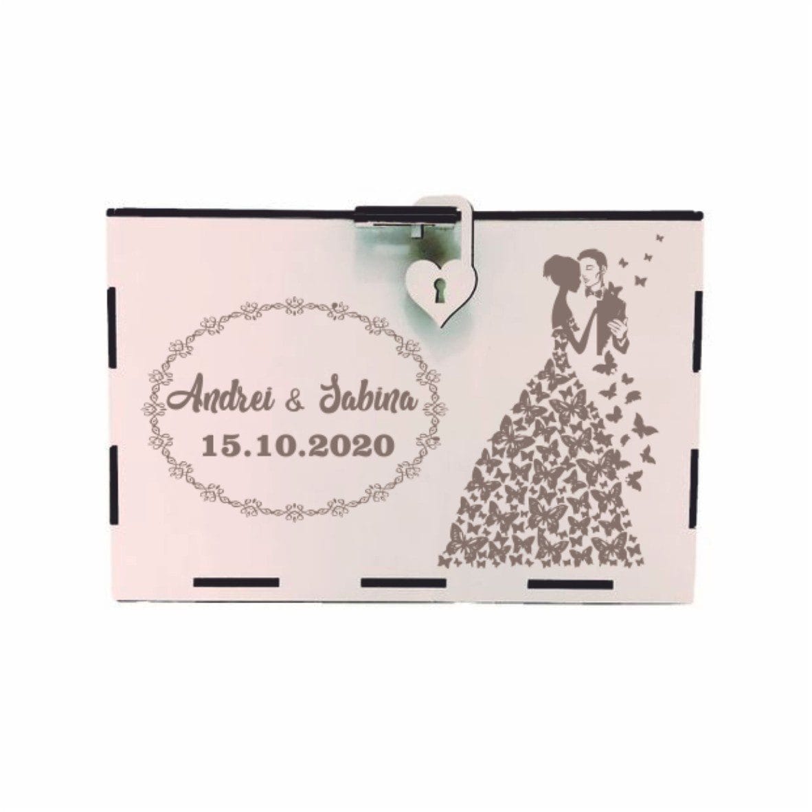 Cutie Dar Miri , Personalizata, Fluturi, Alb, Lemn, 30x20x20 cm, CDN003