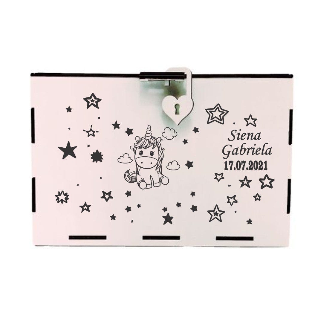 Fii primul care scrii o recenzie pentru „Cutie de bani pentru botez, Unicorn, Lemn, 30x20x20 cm, Alb”