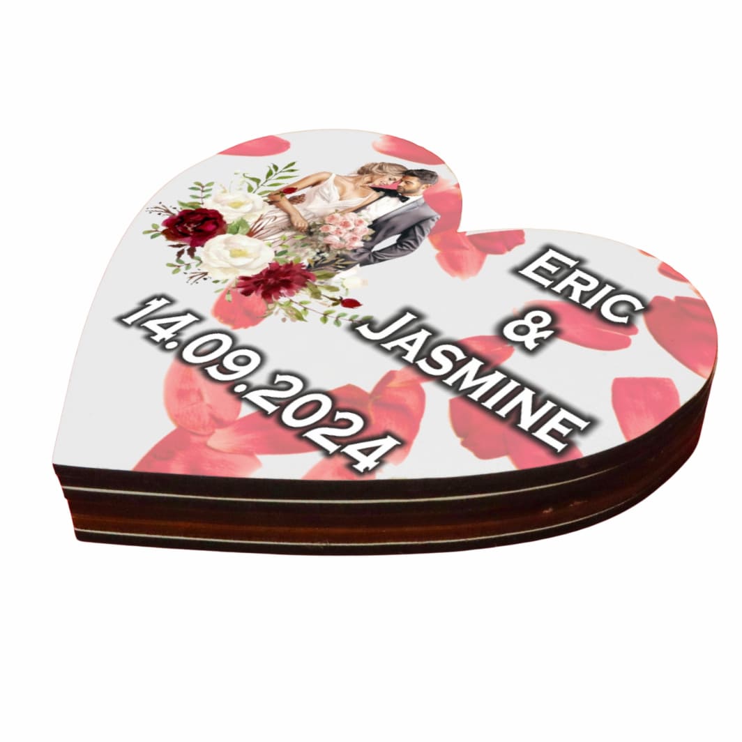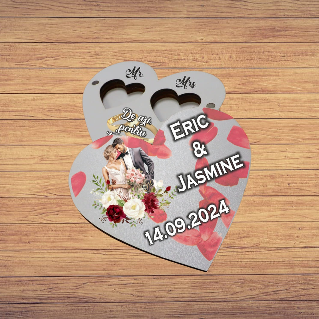 Cutie de verighete cu magnet, Personalizata, Inima, Rosie, Lemn, CTV042