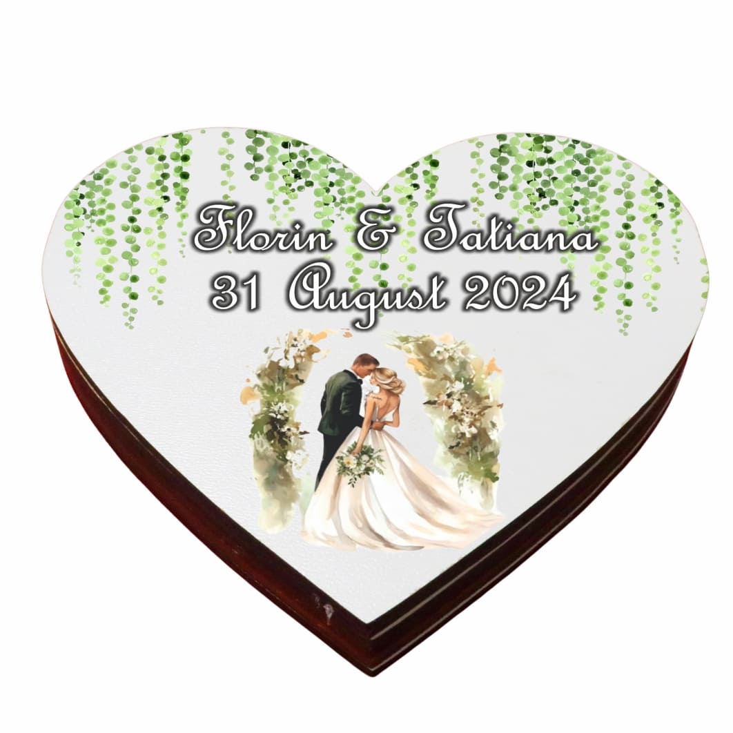 Cutie de verighete cu magnet, Personalizata, Inima, Verde, Lemn, CTV048 Prețul inițial a fost: 77,99 lei.Prețul curent este: 64,10 lei.