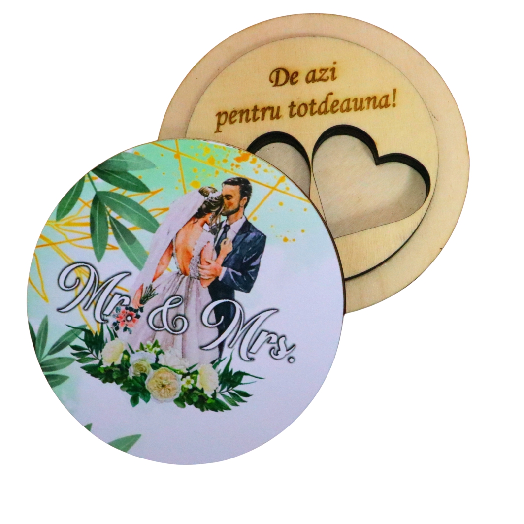 Cutie de verighete, Personalizata, Rotunda, Verde, Lemn natur, CTV018 Prețul inițial a fost: 65,00 lei.Prețul curent este: 60,70 lei.