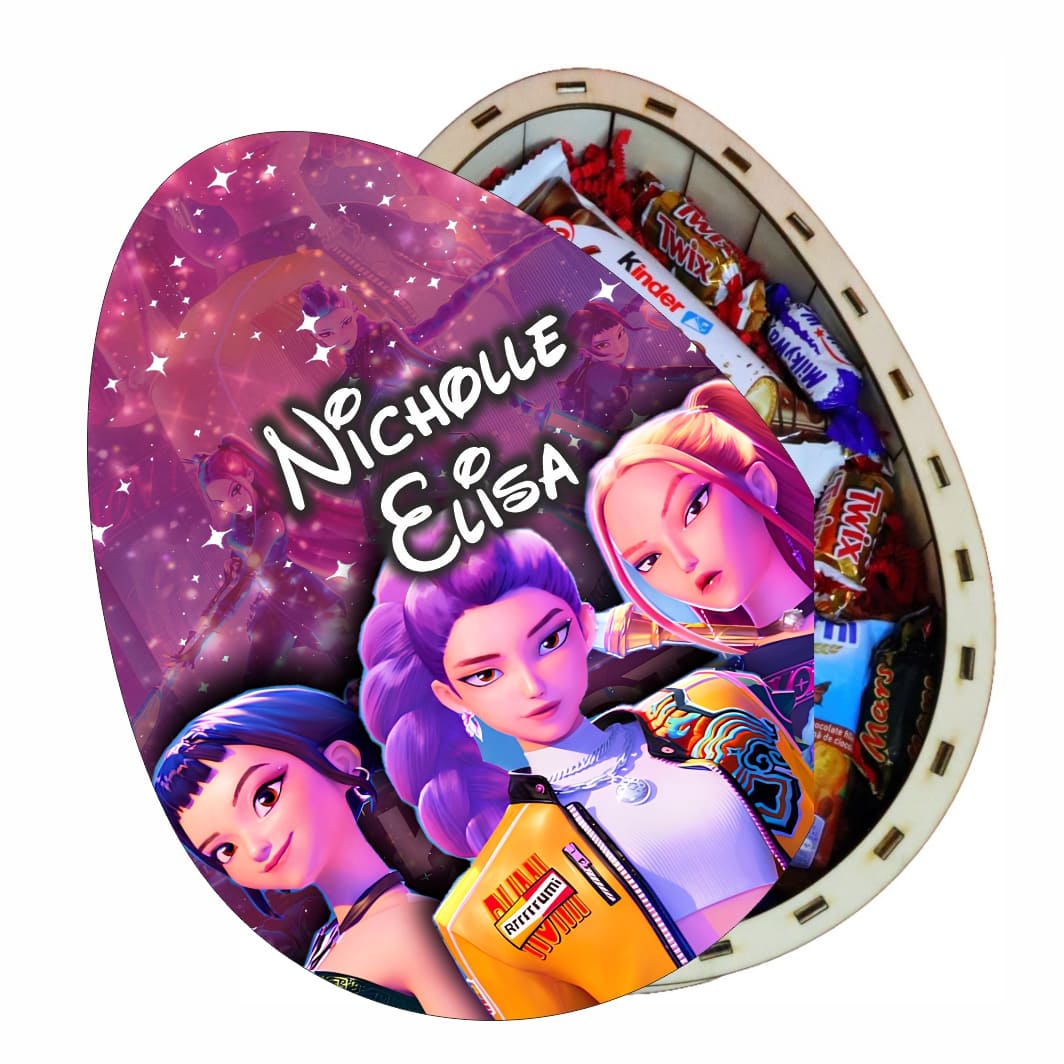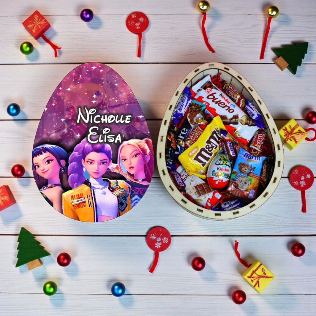Această cutie dulciuri Crăciun personalizată în formă de Ou Kinder, Kpop este alegerea perfectă pentru cei care doresc să dăruiască un cadou special, elegant și personal.