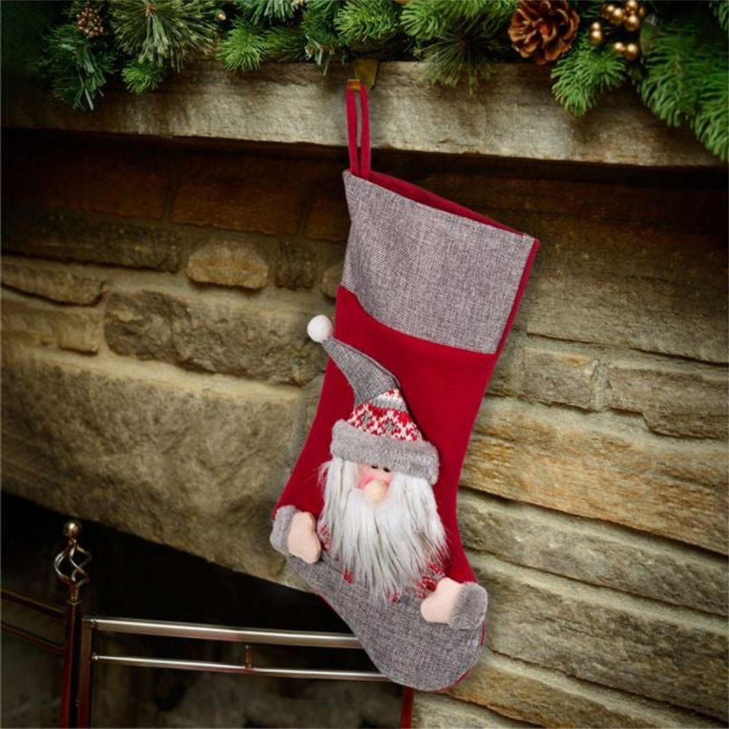 Decoratiune de Craciun, Cizmulita, Rosu, Gri, Mos Craciun, 45cm, DCJ334