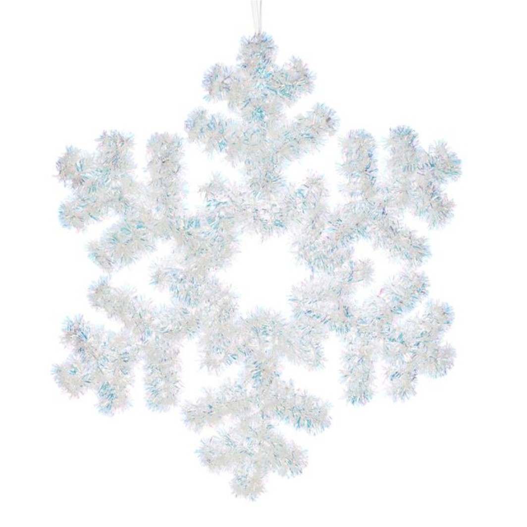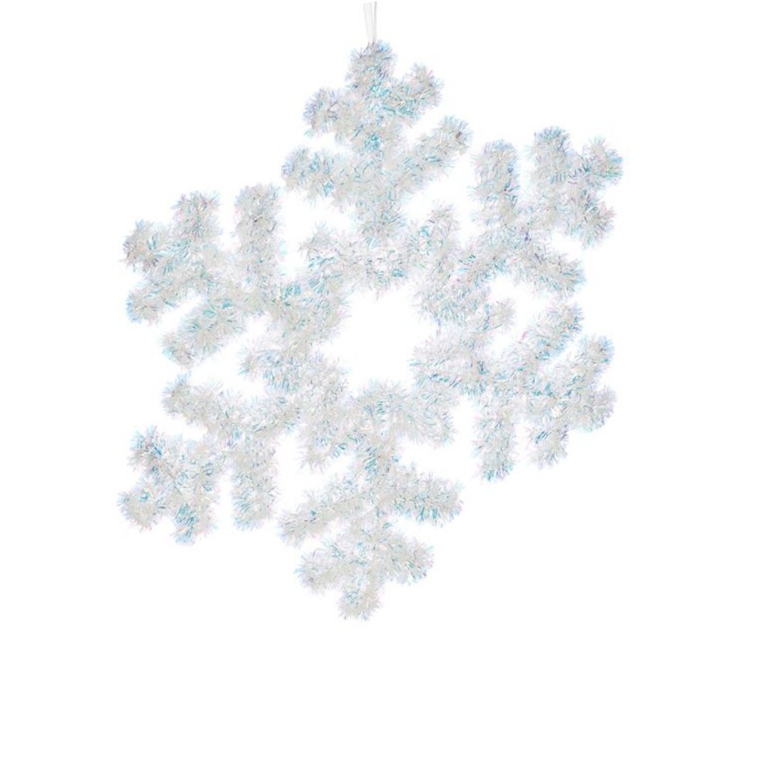 Decoratiune de perete de Craciun, fulg de zapada, cu tinsel holografic alb.