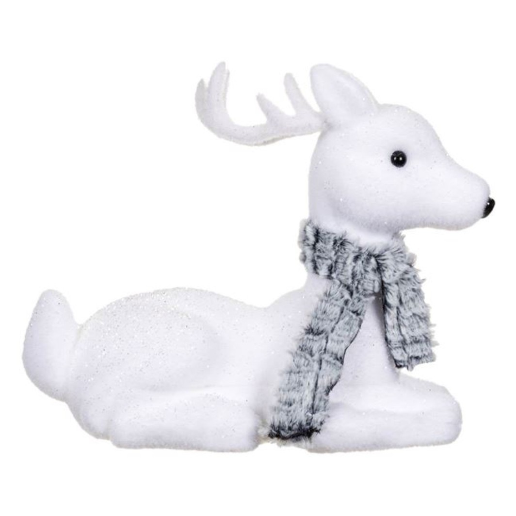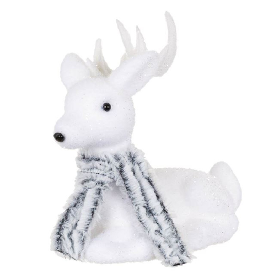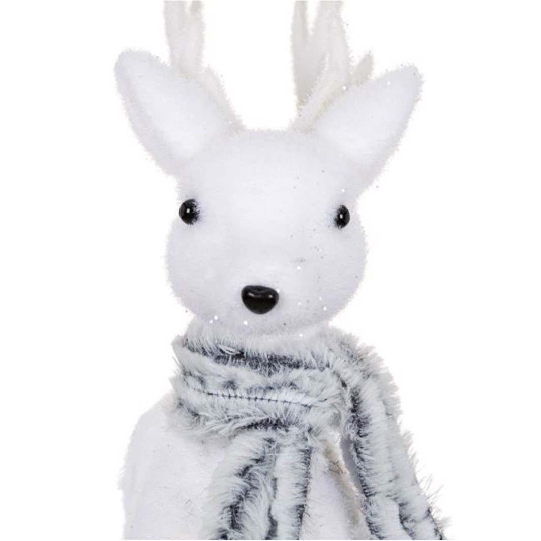 Figura decorativa din spuma de Craciun cerb alb cu fular gri de blana.