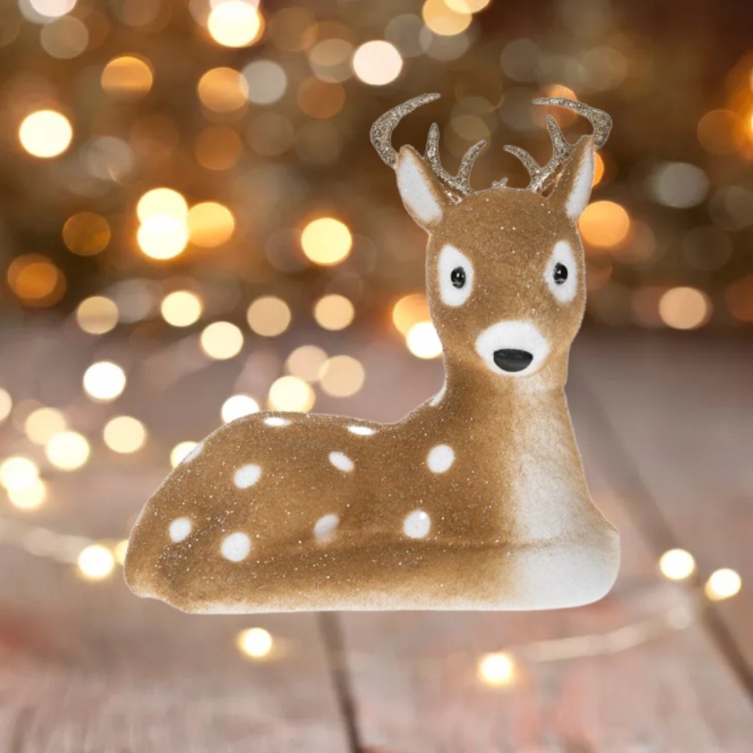 Decoratiune de Craciun, Figura Decorativa, din Spuma, Cerb, Maro – Alb, cu buline, 30X13, DCJ069