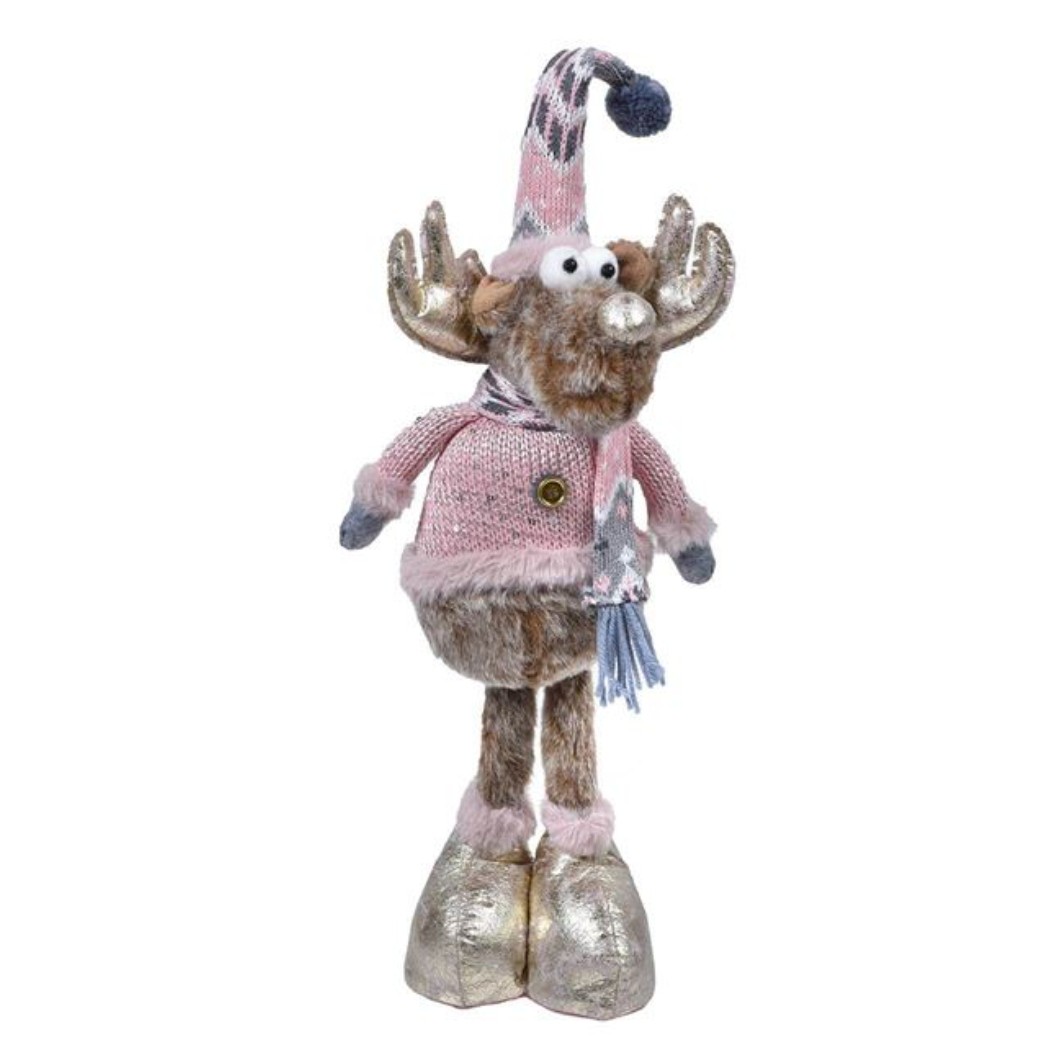 Decoratiune de Craciun, Figurina, Cerb, cu Haina, Roz, Caciula, Fular, 54cm, DCJ210