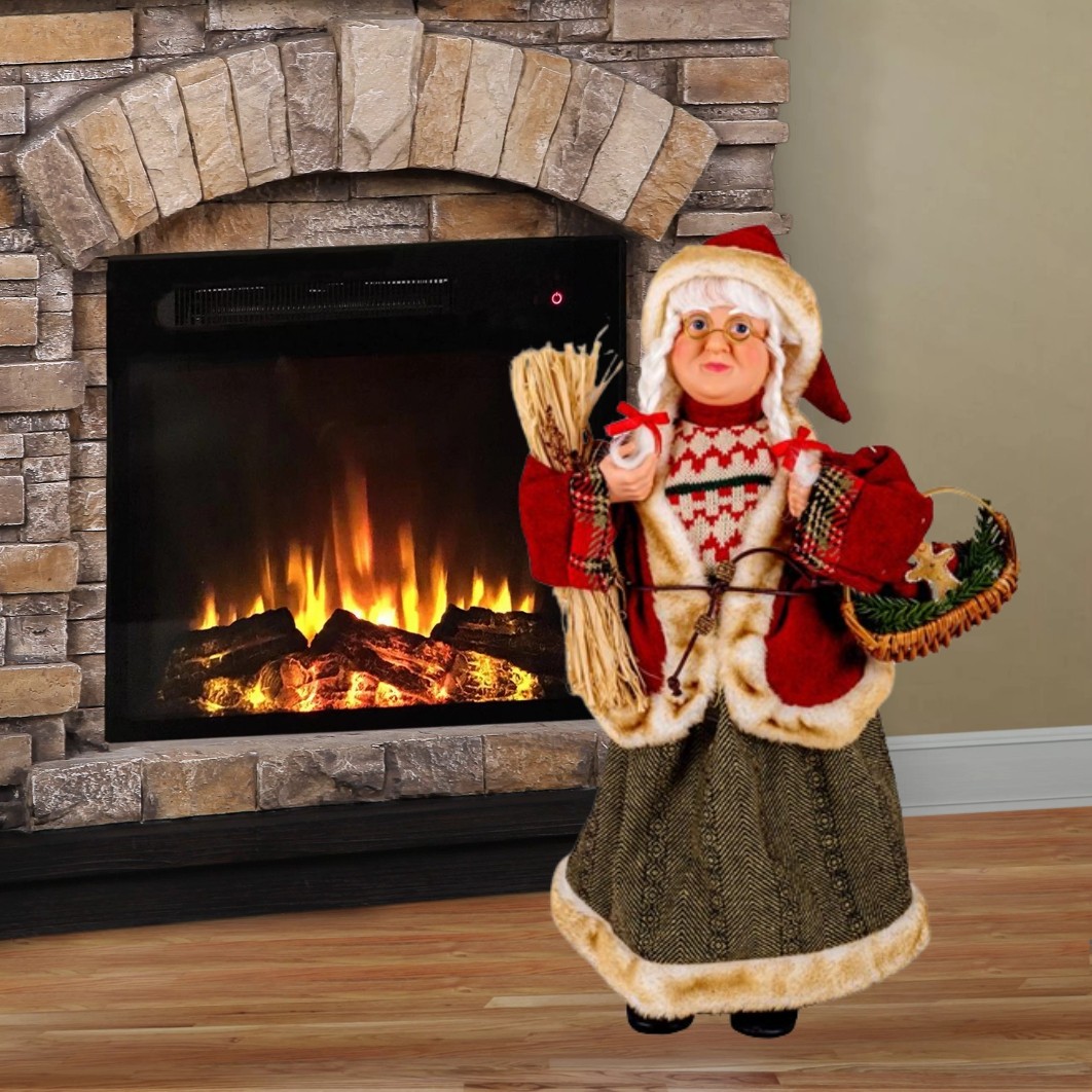 Decoratiune de Craciun, Figurina, Doamna, Mos Craciun, cu Cosulet, 45cm, DCJ216