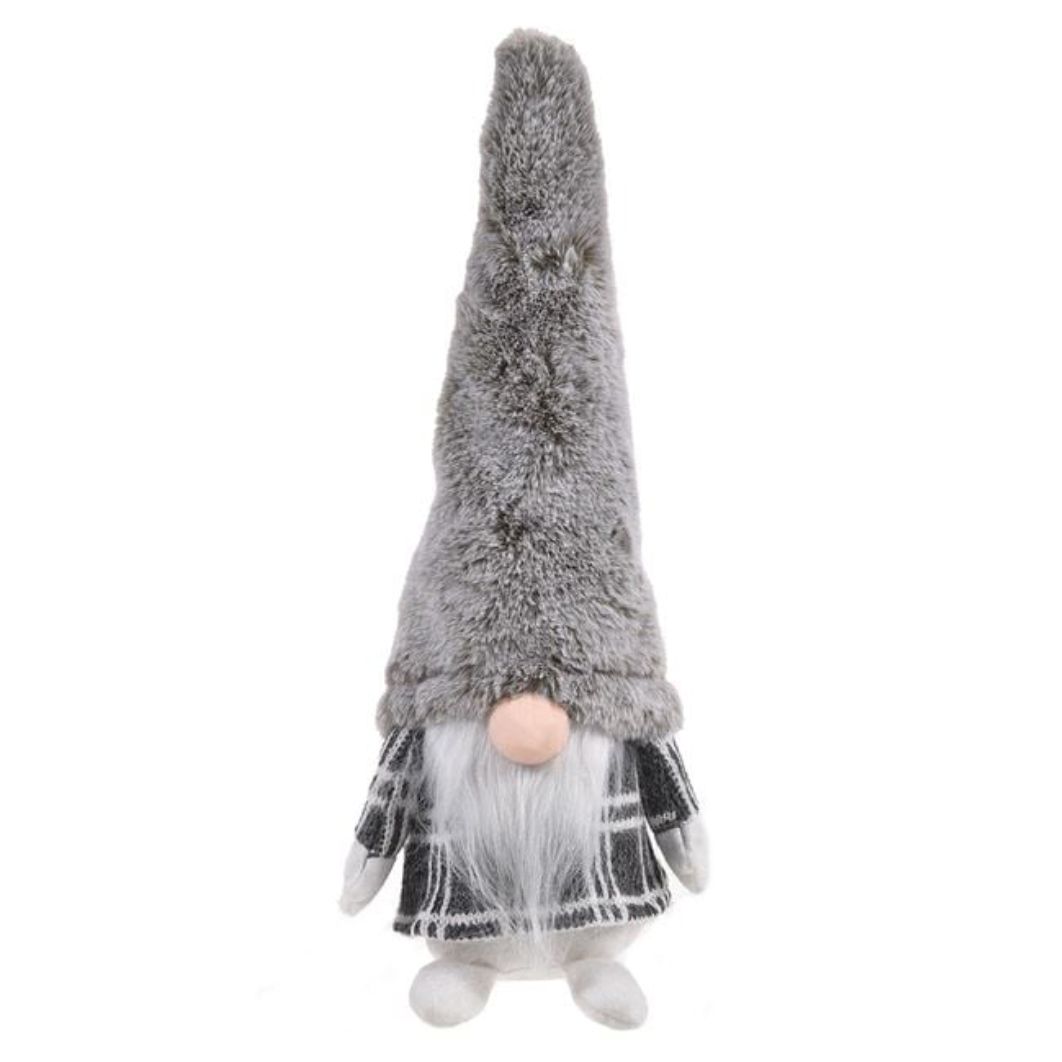 Decoratiune de Craciun, Figurina, Gnome, Alb, Gri, Caciula de Blana, 34cm, DCJ422