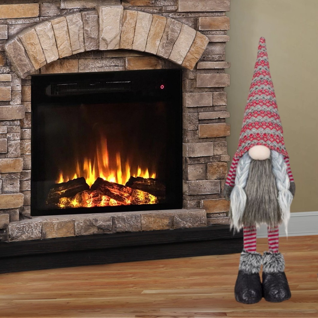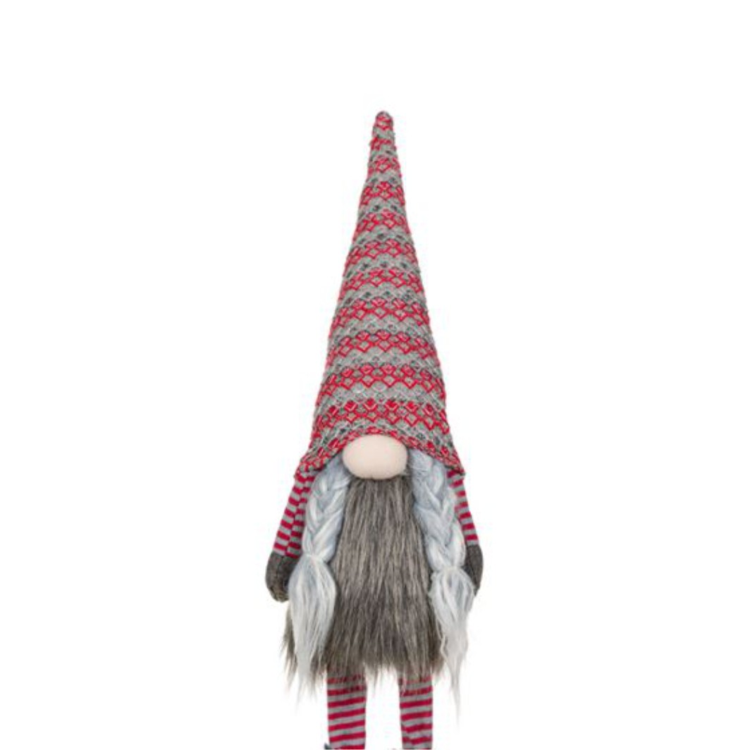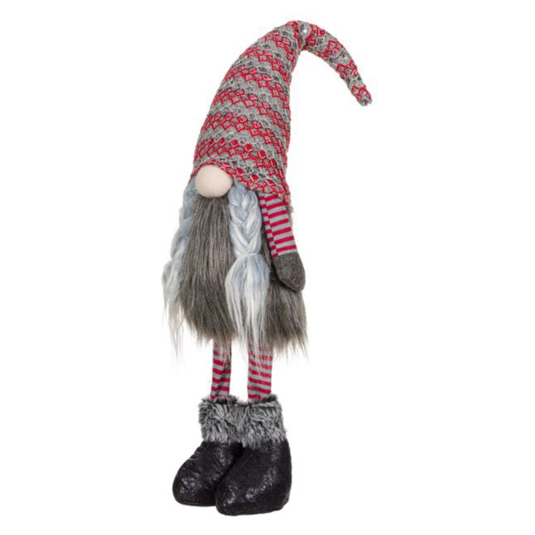 Decoratiune de Craciun, Figurina, Gnome, de Craciun, Codite, Caciula, Rosie, Gri, 61cm, DCJ180