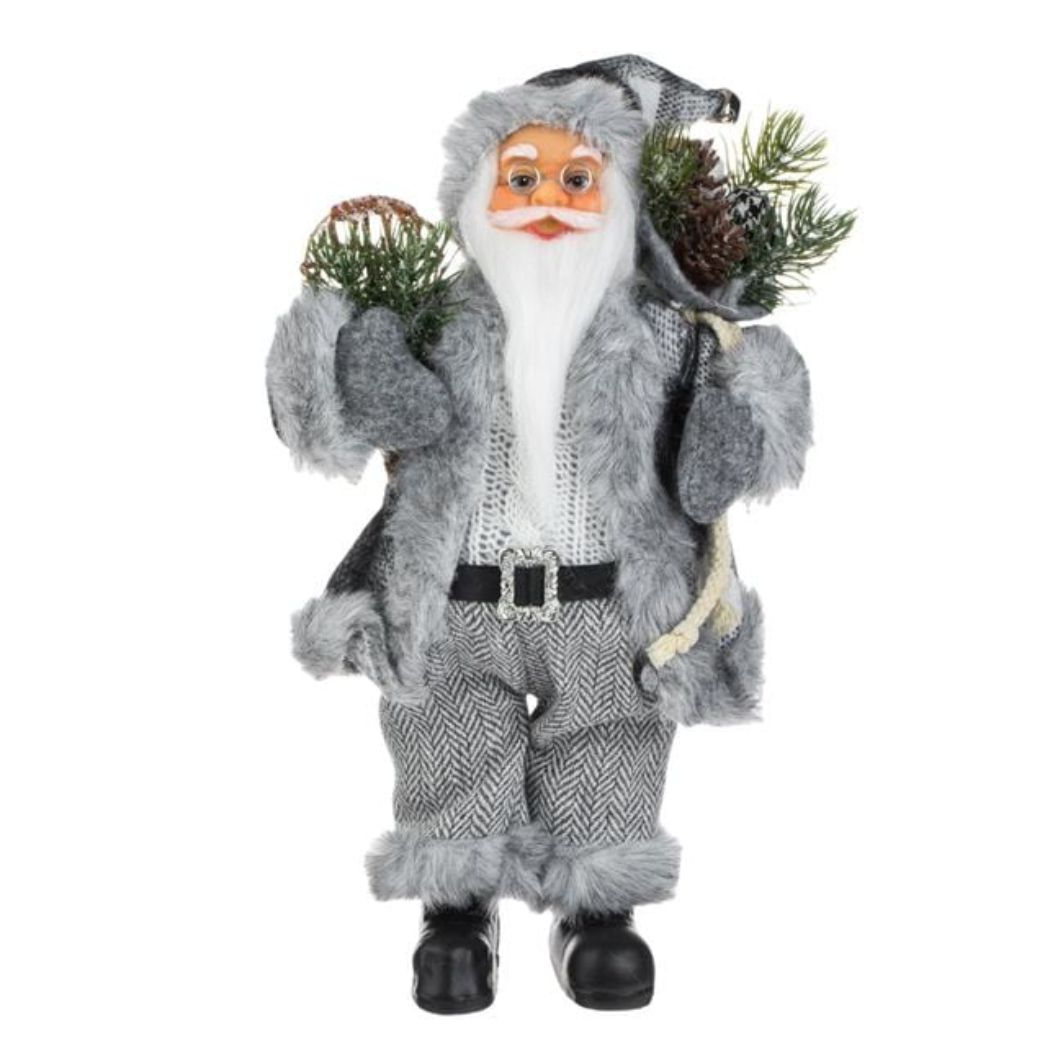 Decoratiune de Craciun, Figurina, Mos Craciun, Blana, Alb, Gri, Schiuri, 30cm, DCJ447