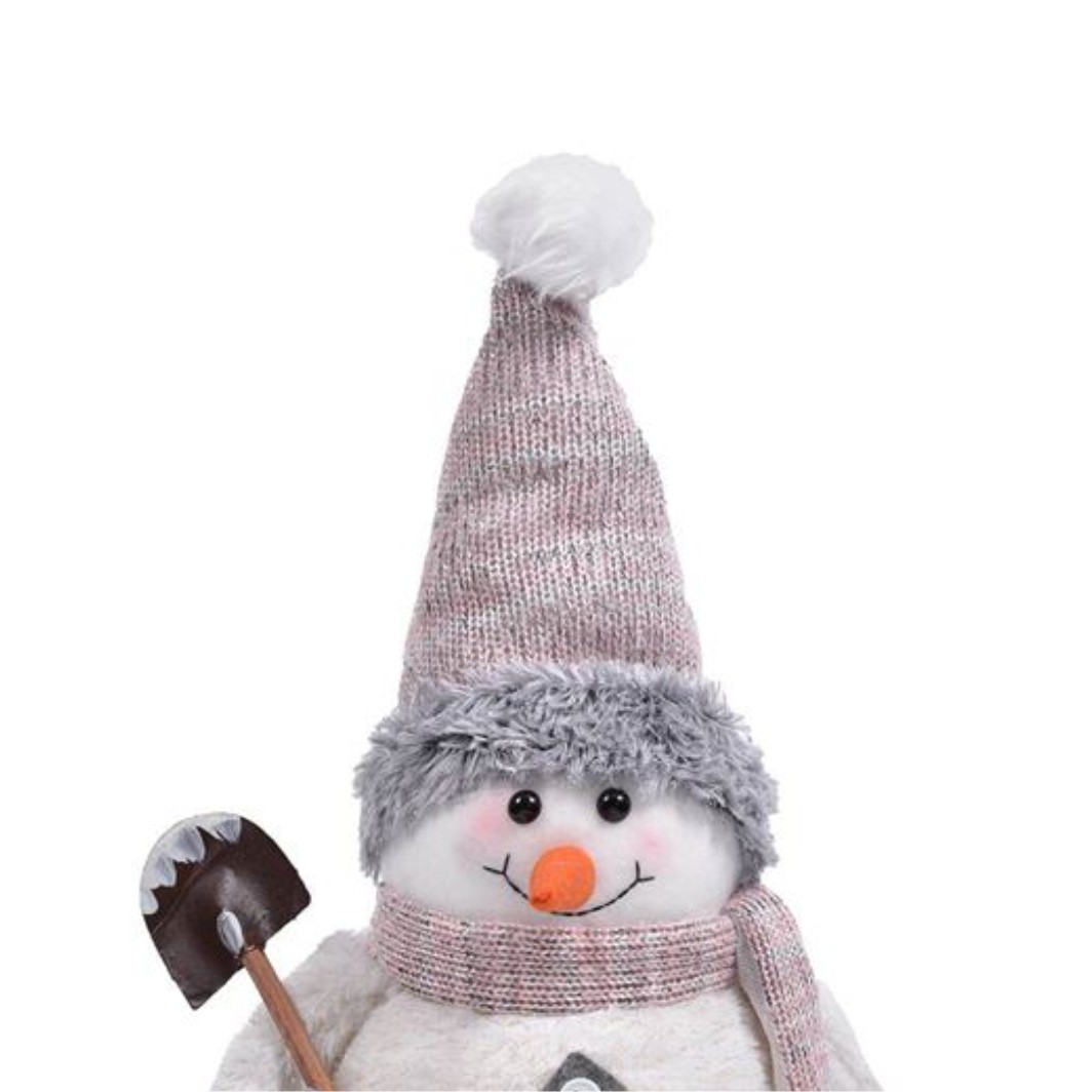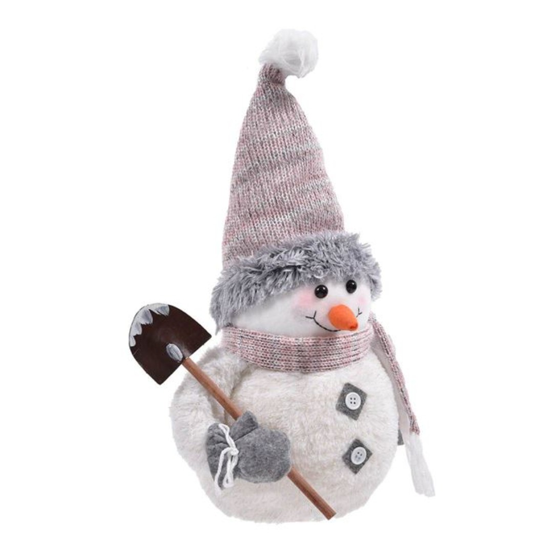 Figurina decorativa de Craciun, om de zapada in costum de blana artificiala ecru cu nasturi mari, caciula roz tricotata, fular si lopata.Are in mana o lopata mica din lemn Combinati diferite figuri sau de acelasi tip pentru o decorare speciala! Lumea magica a Craciunului!