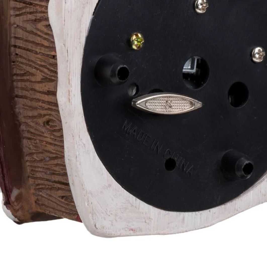 Glob de zapada muzical de Craciun, pe o baza casa maro ninsa cu caine si Mos Craciun cu detalii sculptate.