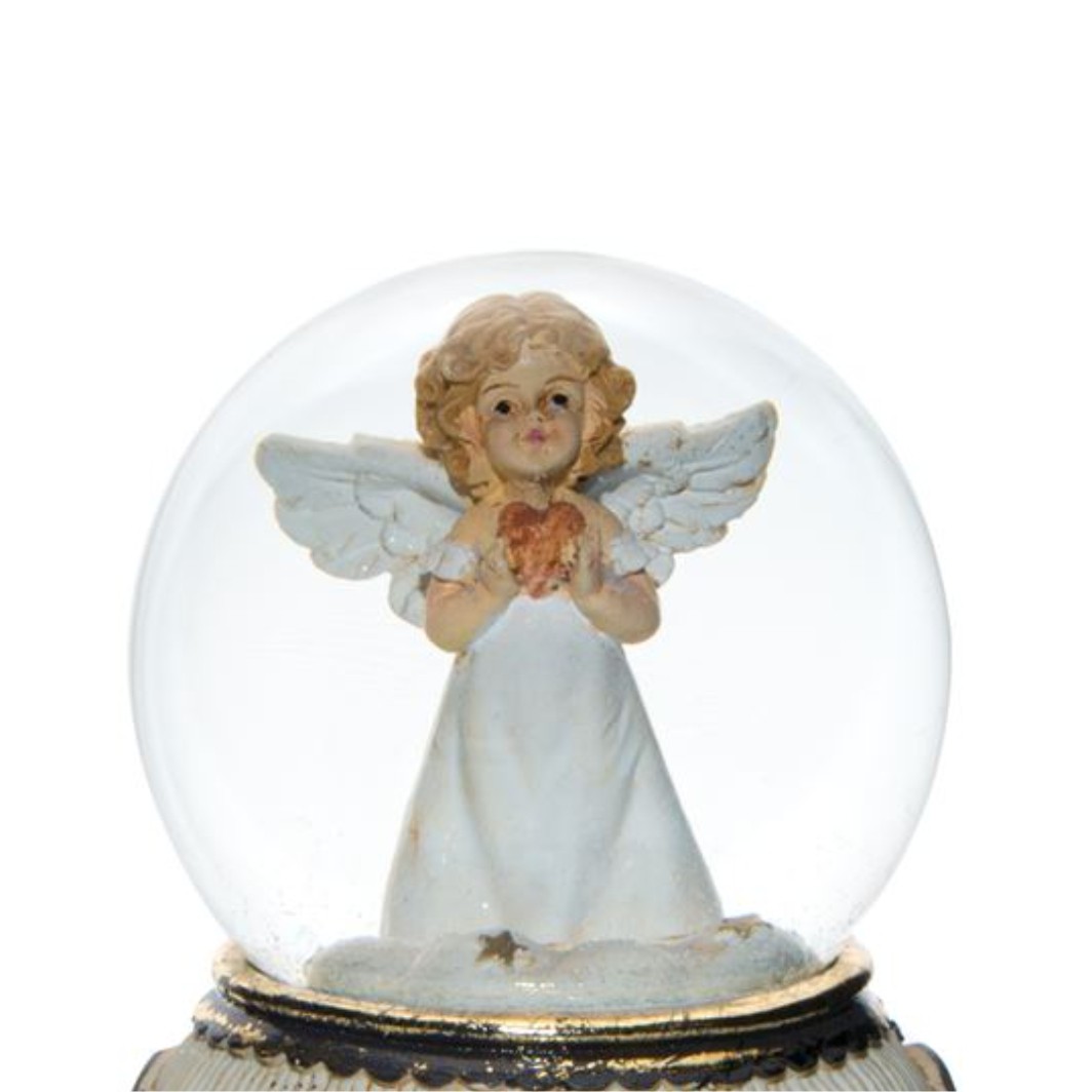 Glob lichid decorativ de Craciun muzical cu ingeras ce tine o inima.