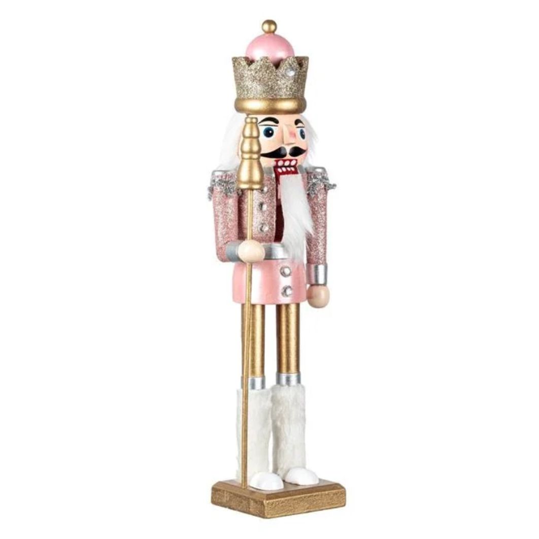 Decoratiune de Craciun, Rege, Lemn, Uniforma, Roz, Glitter, Palarie, 38cm, DCJ360