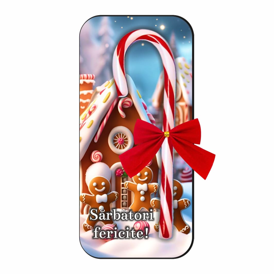 - Design: Tematic de Crăciun, cu baston de zahăr și fundiță roșie