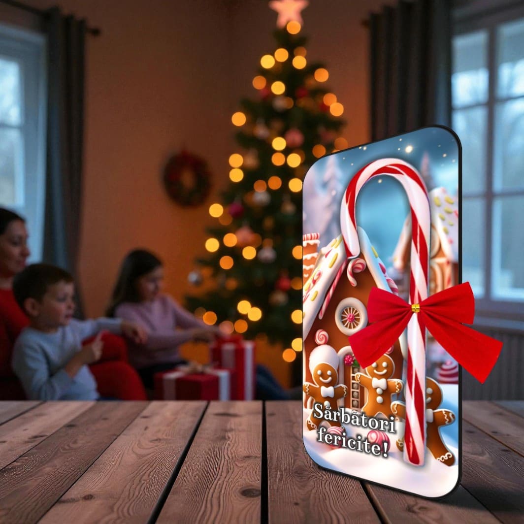 Un cadou mic, dar cu impact mare! Alegând o felicitare acadea Crăciun Turta Dulce, transformi o simplă urare într-un moment memorabil. Este perfectă pentru copii, colegi, clienți sau parteneri de afaceri – un mod elegant și jucăuș de a transmite „Crăciun fericit!”. Printul UV asigură o rezistență sporită, iar combinația dintre lemnul natural și bastonul colorat redă farmecul autentic al iernii.