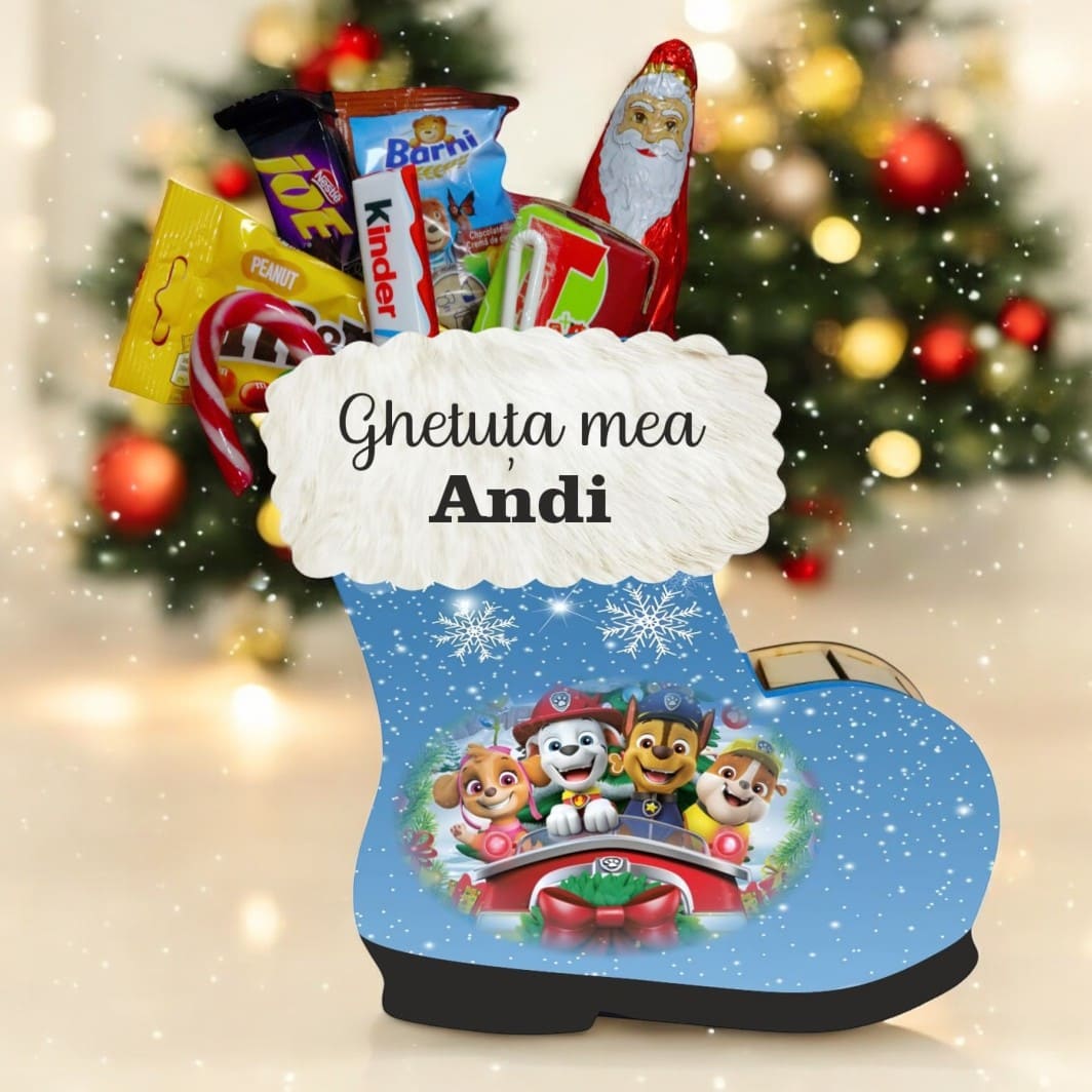 Alegând o ghetuță dulciuri Paw Patrol, Craciun, personalizată, oferi mai mult decât o surpriză – creezi o amintire frumoasă ce va fi păstrată ani de zile.