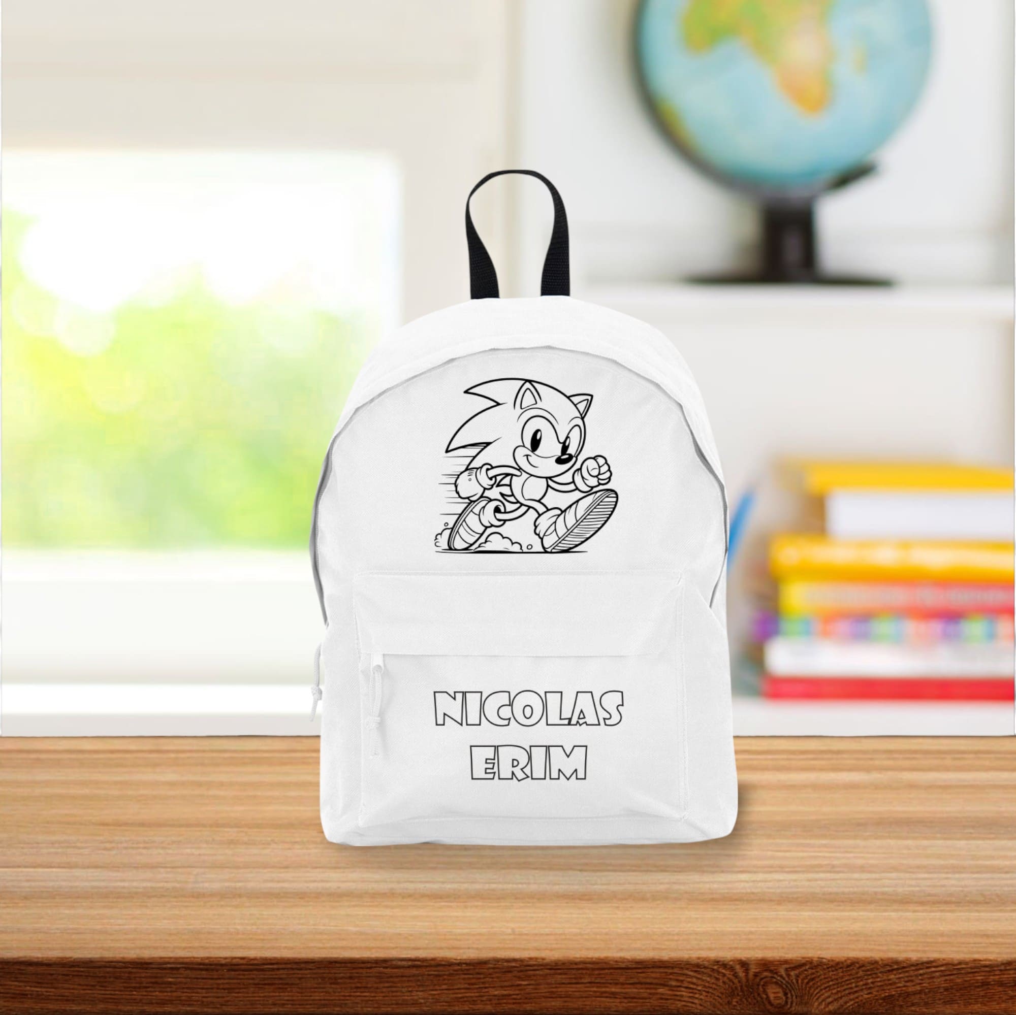 Ghiozdan personalizat cu nume, Scoala, Sonic, 38×28 cm, Alb, GS006