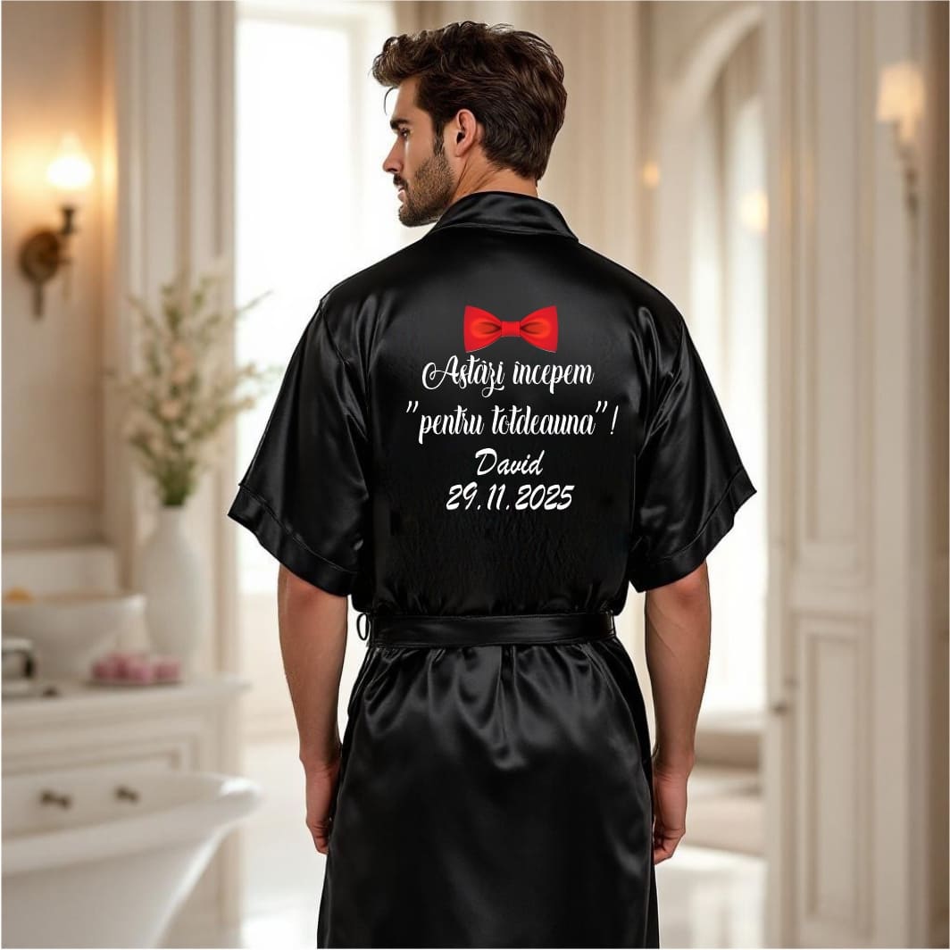 Halat mire, Personalizat, Nunta, Negru, Satin, HMIN03 Prețul inițial a fost: 150,00 lei.Prețul curent este: 129,99 lei.