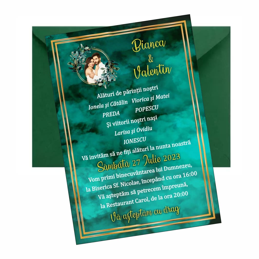 Fiecare invitatie o sa fie inserata intr-un plic verde.
