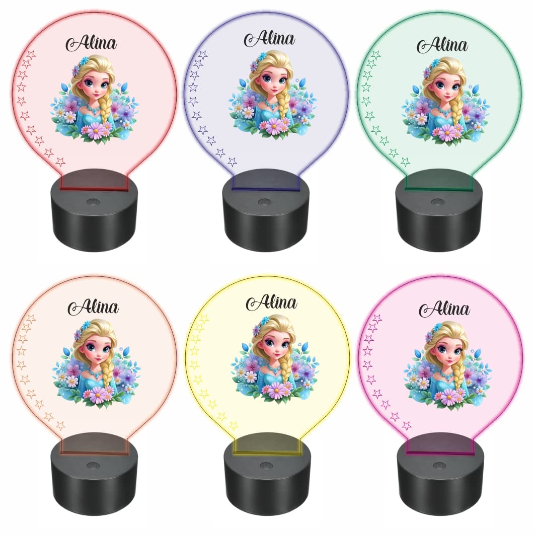Lampa 3D personalizata, model Elsa, LDUV022, multicolor, 22×18 cm