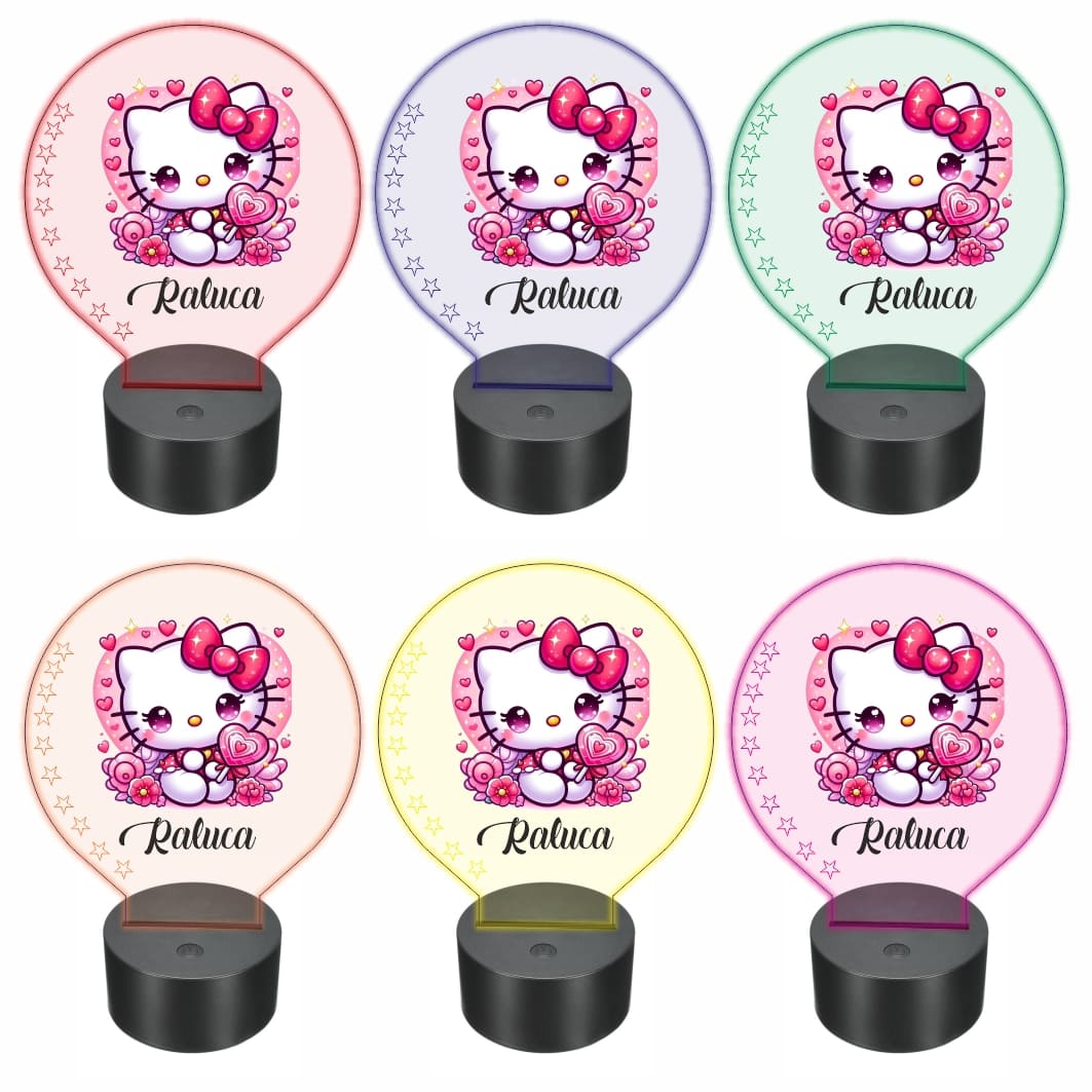Lampa 3D personalizata, model Hello Kitty, LDUV020, multicolor, 22×18 cm