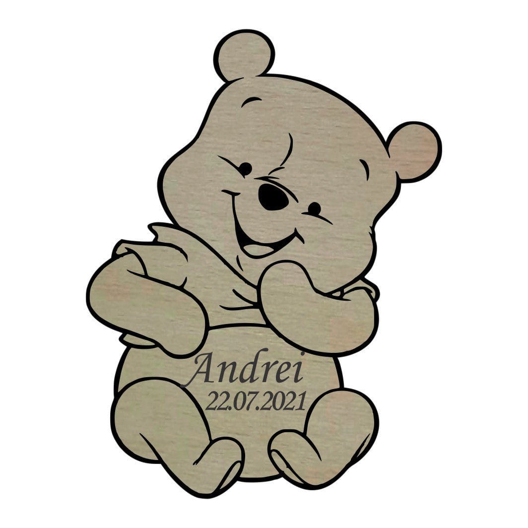 Marturie botez, Personalizata, Model Winnie, Lemn, 5×4 cm, MB004