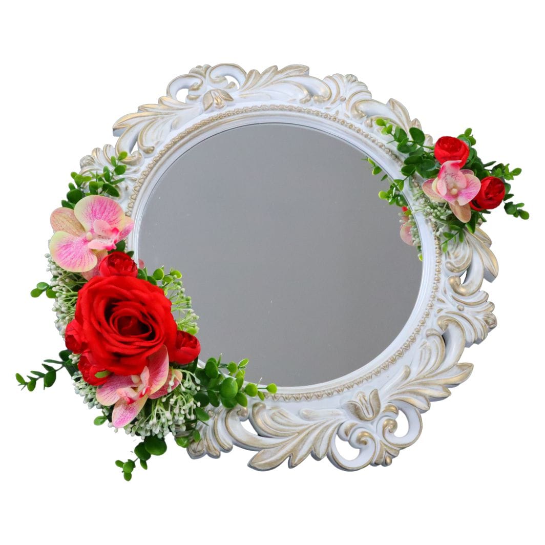 Oglinda Miresei Decorata, Trandafiri, Orhidee, Bujori, Rosu, Roz, 47 cm, OGLDC025