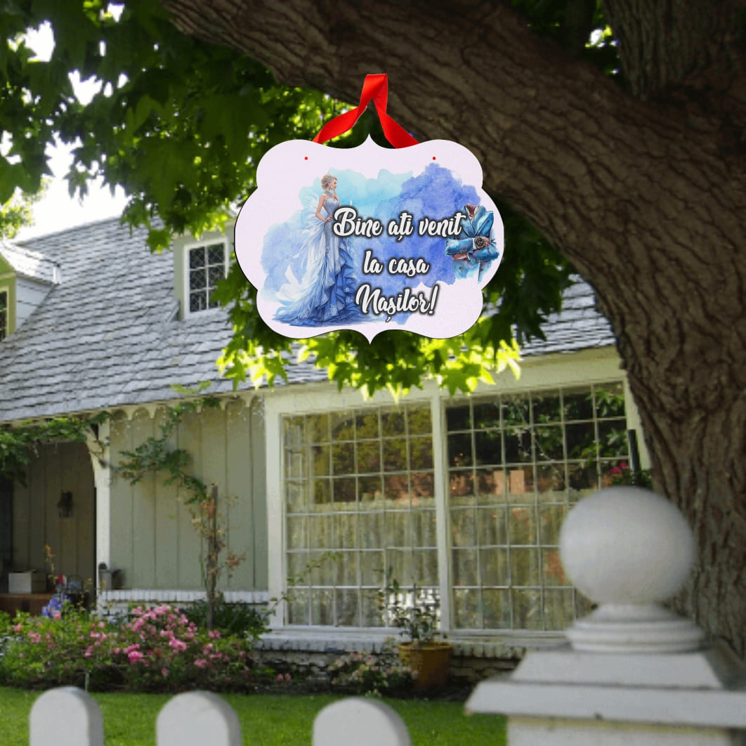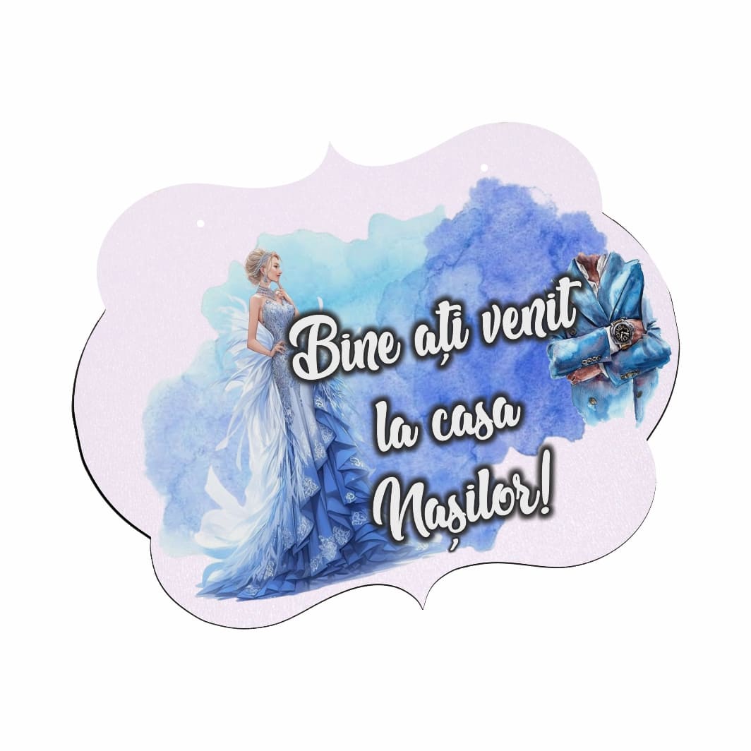 Pancarta Bine Ati Venit la casa Miresei, Nunta, Albastru, 40x31cm, PBUV016 Prețul inițial a fost: 80,00 lei.Prețul curent este: 59,99 lei.