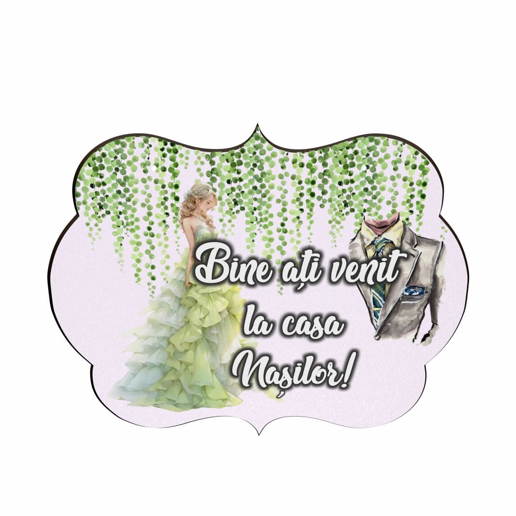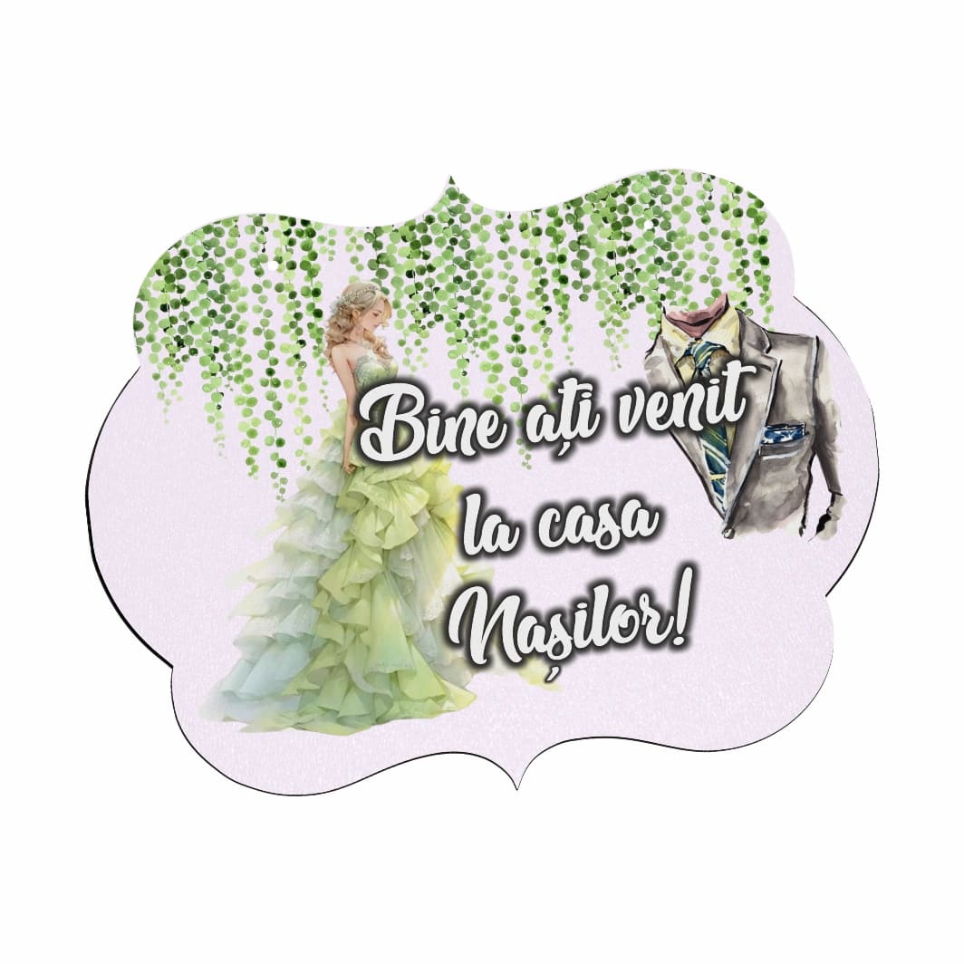 Pancarta Bine Ati Venit la casa Miresei, Nunta, Verde, 40x31cm, PBUV013 Prețul inițial a fost: 80,00 lei.Prețul curent este: 59,99 lei.