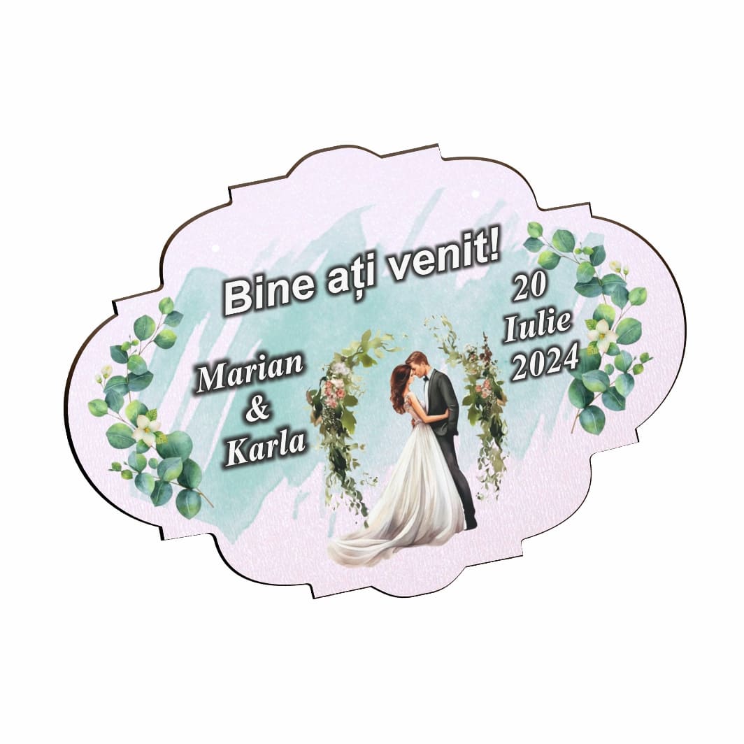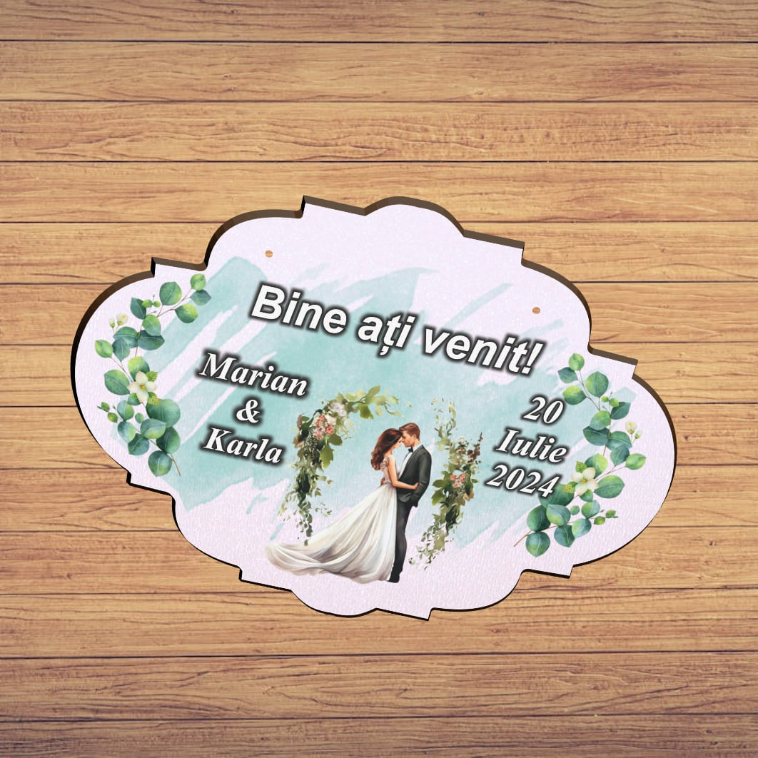 Pancarta Bine Ati Venit, Personalizata, Nunta, Verde, 40x31cm, PBUV030 Prețul inițial a fost: 80,00 lei.Prețul curent este: 59,99 lei.