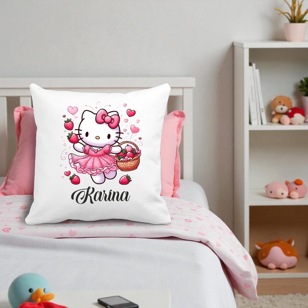 ️ Comandă acum Pernă Copii Personalizată Hello Kitty, Capsuni