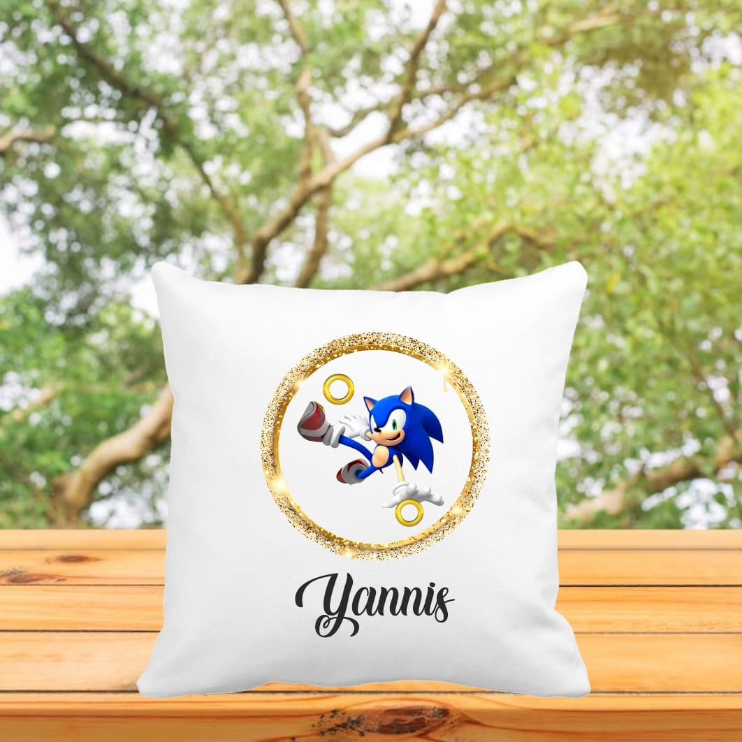 ️ Comandă acum Pernă Copii Personalizată Sonic Cercuri Aurii