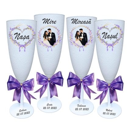 Set 4 Pahare Personalizate, Nunta, Miri, Nasi, Alb, PHRP002