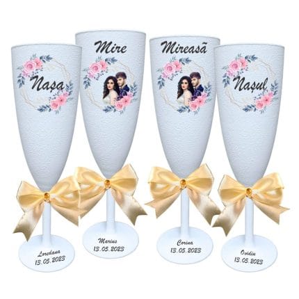 Set 4 Pahare Personalizate, Nunta, Miri, Nasi, Alb, PHRP051