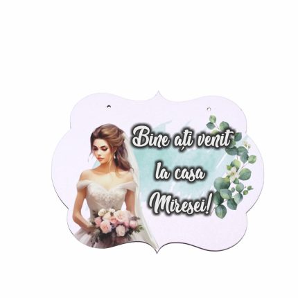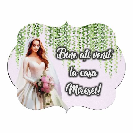 Pancarta Bine Ati Venit la casa Miresei, Nunta, Verde, 40x31cm, PBUV010