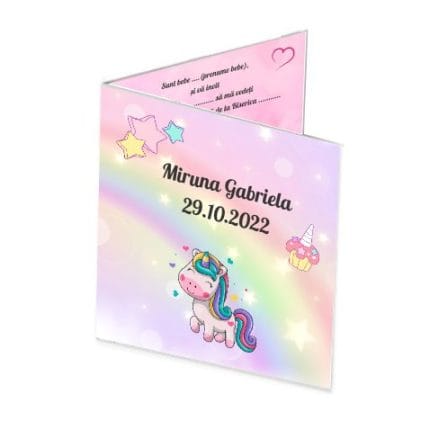 Invitatie botez, Unicorn 16×15 cm, Carton, Model IC37