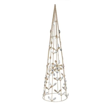 Decoratiune de Craciun, Con, Flori, Cristale, Glitter, Bej, 15x60cm, DCJ384