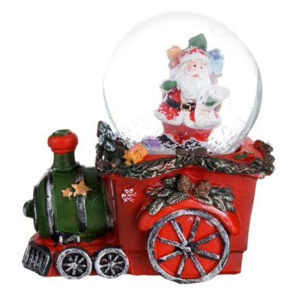 Decoratiune de Craciun, Glob Lichid, Mos Craciun, Cadouri, Baza Rosie, Tren, 8.5cm, DCJ489