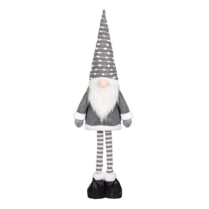 Decoratiune de Craciun, Figurina, Gnome, cu Miscare, Blana, Gri, Caciula, 89cm,DCJ221