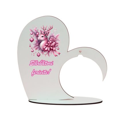 Suport Glob Floral tip Inima, Craciun, Lemn, 20x19cm, SFGCUV010