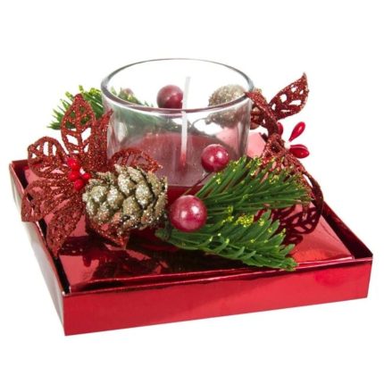 Decoratiune de Craciun, Lumanare, Rosu, Pahar, 5.5×6.5cm, DCJ310