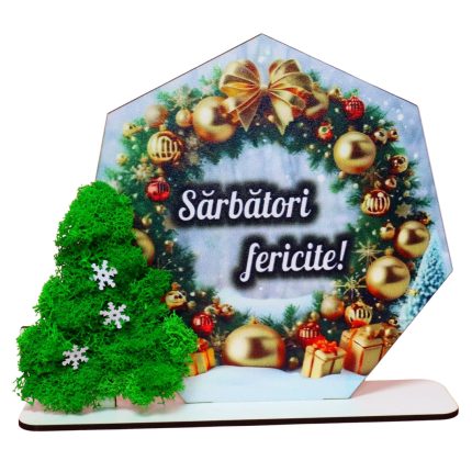 Decoratiune cu licheni, Sarbatori, Craciun, Lemn, 22x16cm, DCCRUV024