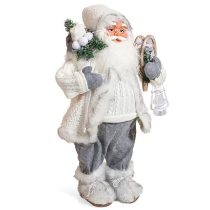 Decoratiune de Craciun, Figurina, Mos Craciun, Blana, Alb, Gri, Schiuri, 30cm, DCJ447